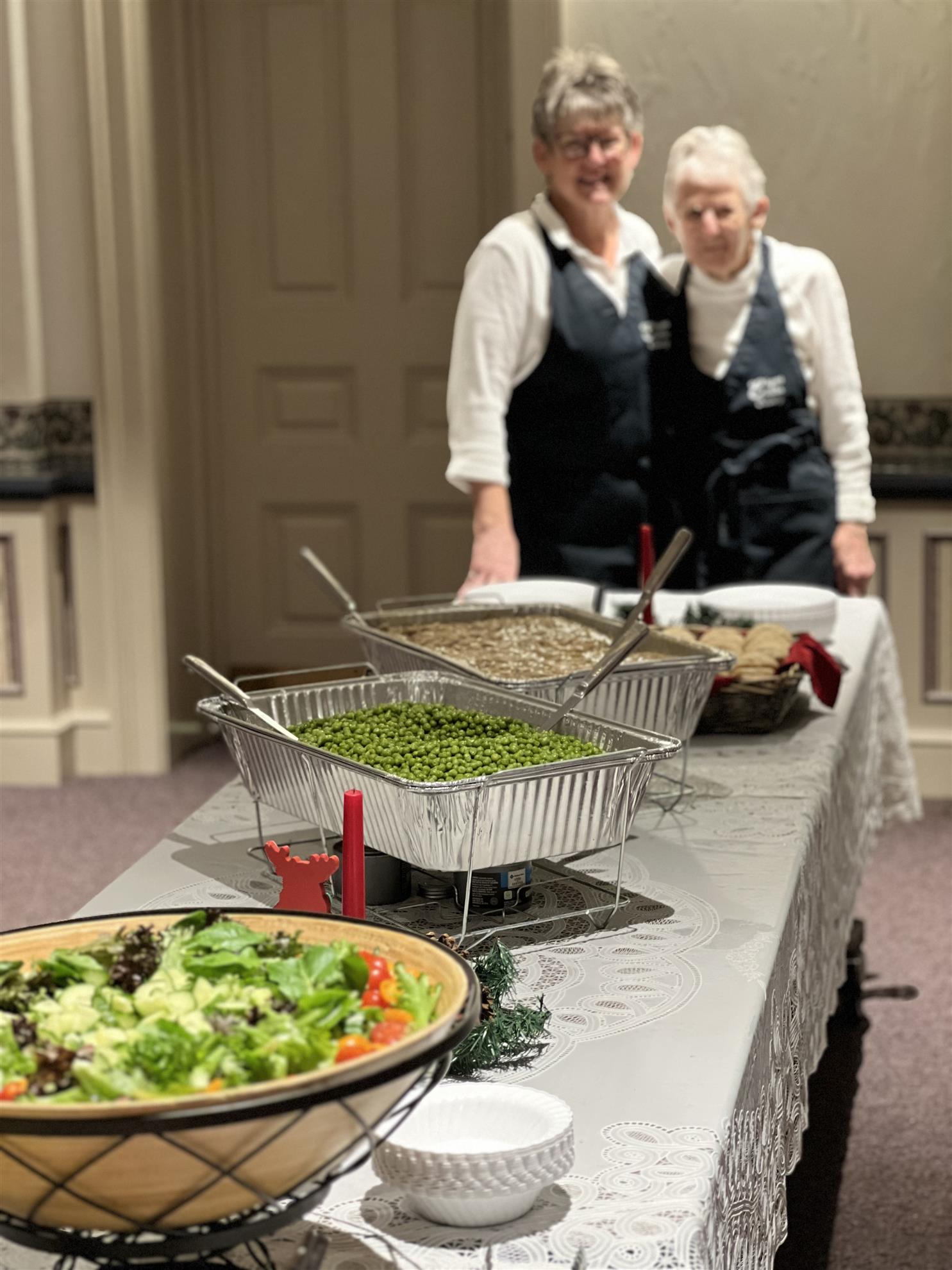 Vicki and her mother Ginny Bremer served our luncheon of chicken and biscuits, salad and jello topped off with plates of Vicki’s wonderful cookies.