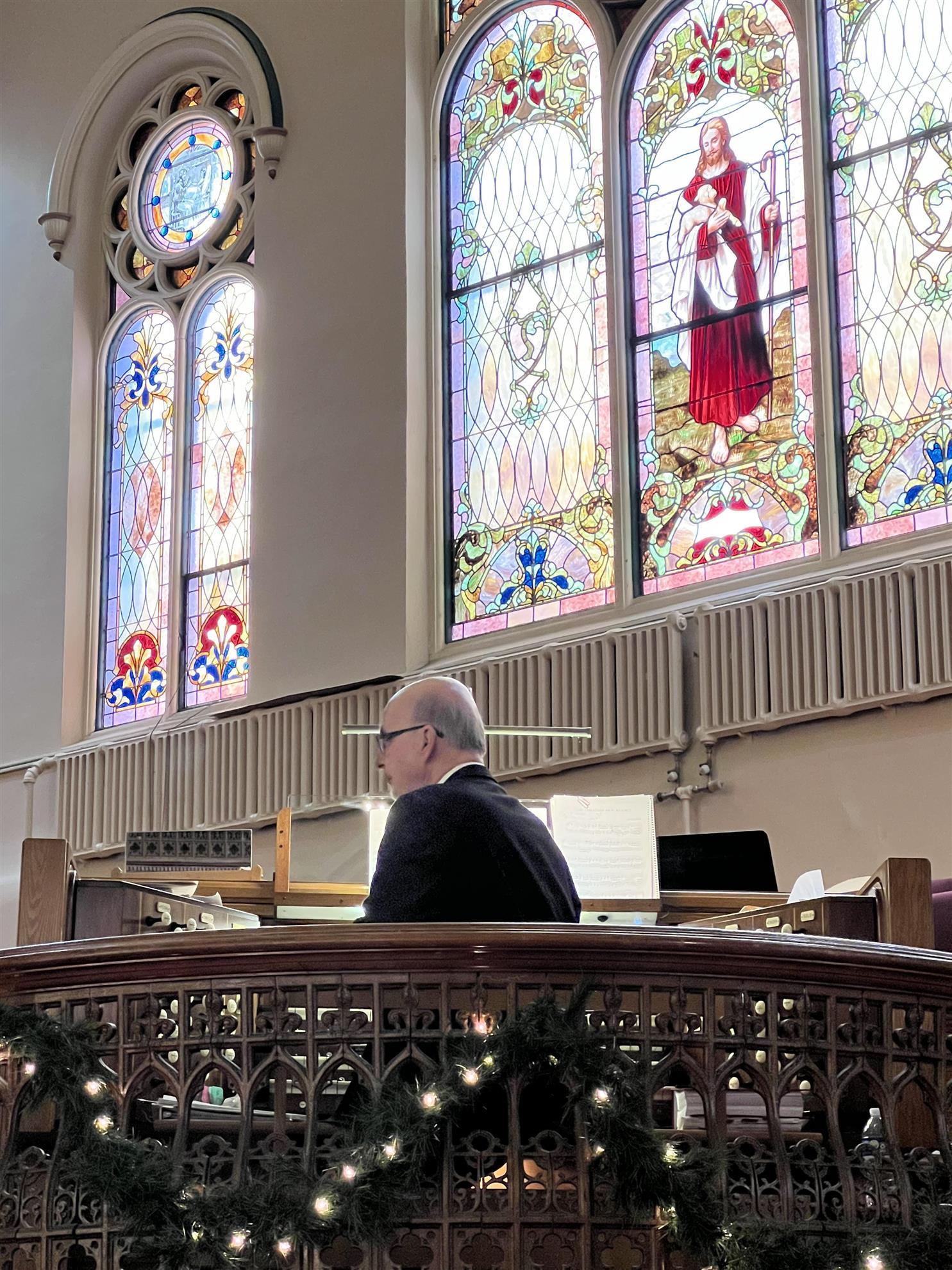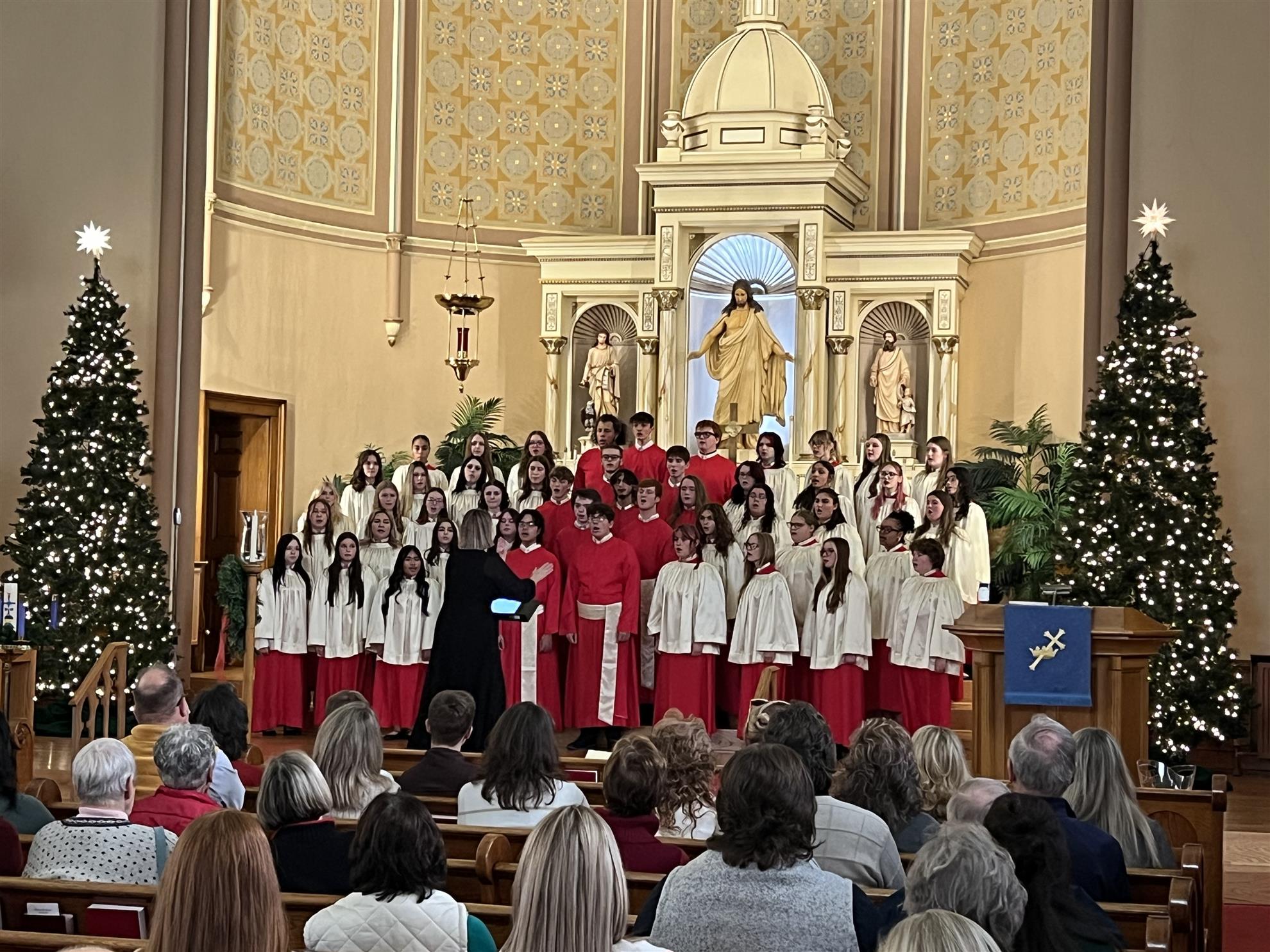 We adjourned to the sanctuary of the Church where we were treated to the holiday music of the Jamestown High School A’Cappella Choir, and their several ensembles under the direction of Lauren Scharf, accompanied at the organ by Director Emeritus Brian Bogey and at the piano by Julie Livengood.